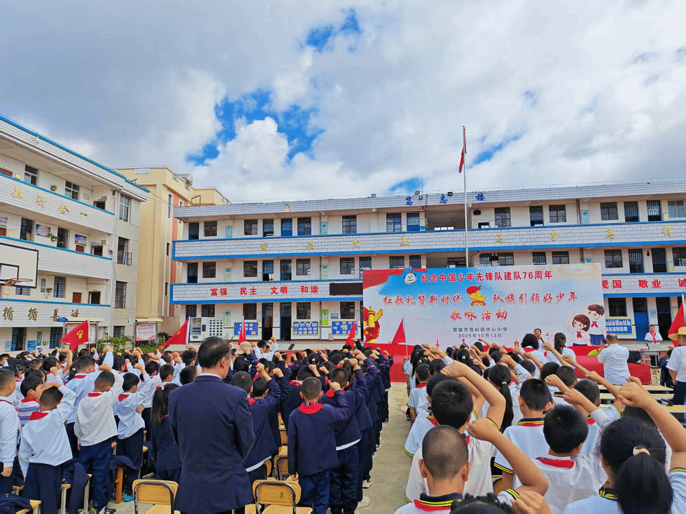 2025年10月13日上午,为庆祝中国少年先锋队建队76周年,引导全镇少先队员厚植家国情怀、强化使命担当,弘扬光荣传统,凝聚班级向心力,丰富校园文化内涵,在楚雄市苍岭镇中心小学举办“红歌礼赞新时代,队旗引领好少年”歌咏活动,用歌声传承红色基因,用行动践行青春担当,以音乐诠释铸魂育人。