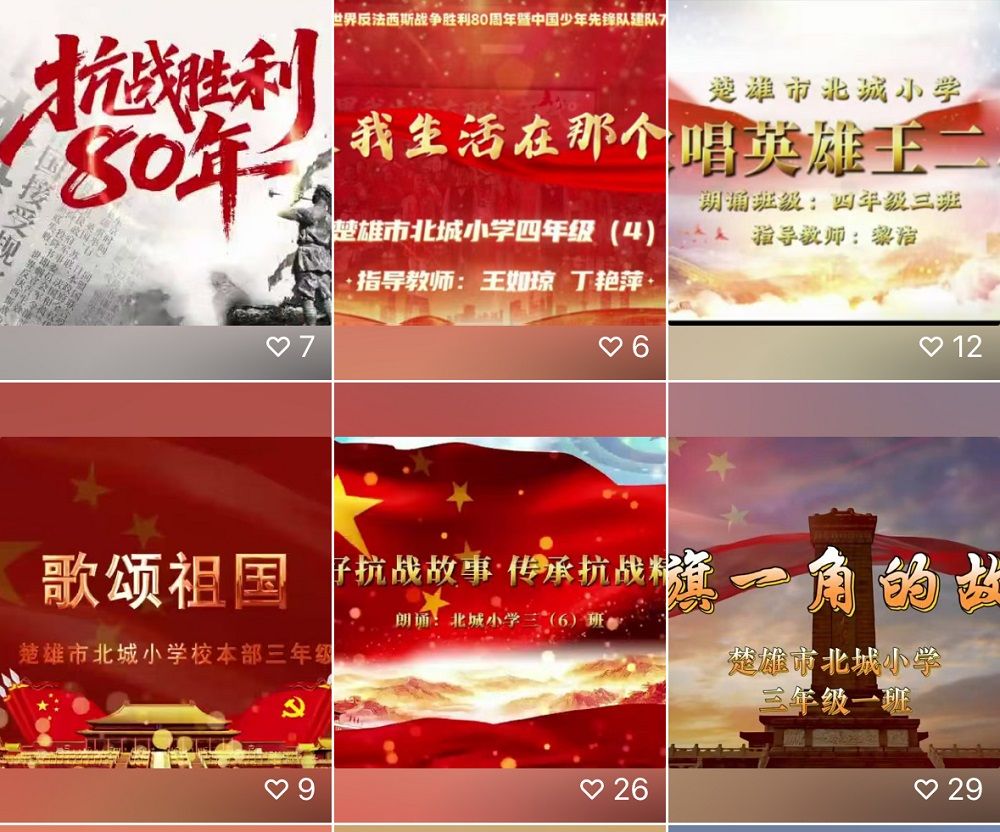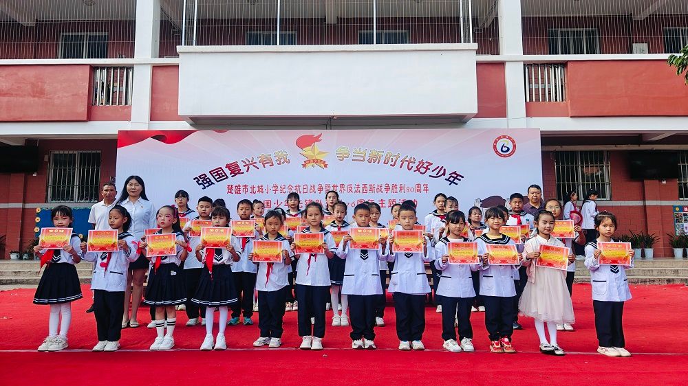 为深入学习宣传贯彻第九次全国少代会精神,弘扬伟大爱国主义精神,教育引导广大少先队员牢记习近平总书记的教导,争当爱党爱国、勤奋好学、全面发展的新时代好少年。借纪念抗日战争暨世界反法西斯战争胜利80周年的契机,在中国少年先锋队建队76周年之际,楚雄市北城小学在建队日期间开展系列活动,引导少先队员铭记队史,增强组织归属感与荣誉感,弘扬爱国情怀,树立强国志向。