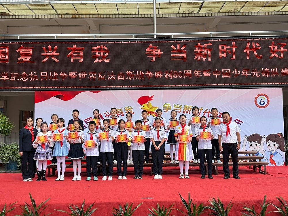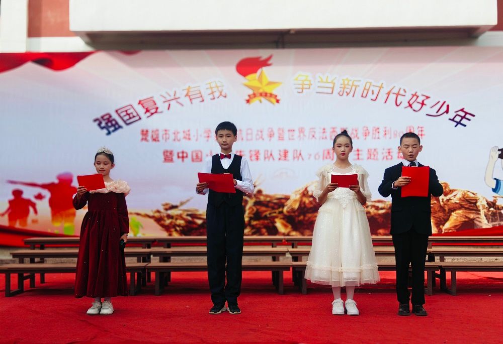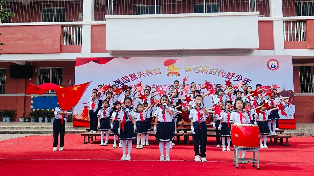 当历史的硝烟渐渐远去,有一种精神始终滚烫,它镌刻在“一寸山河一寸血”的抗争里,流淌在“救亡图存”的呐喊中;当时代的号角吹响新征程,有一种力量始终激荡,它指引我们从历史深处汲取养分,向着民族复兴的征程奋勇前行。10月13日上午,两校区同时举行纪念抗日战争暨世界反法西斯战争胜利80周年暨中国少年先锋队建队76周年朗诵(红歌)汇演活动,活动以大队活动仪式进行。