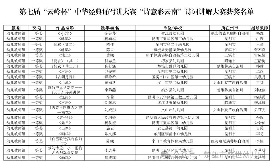本届大赛旨在传承中华优秀传统文化,提升师生语言文化素养。经各地各校严格选拔推荐,省级组织专家评审,“诗意彩云南”诗词讲解大赛共评选出一、二、三等奖664个。我园作品在激烈角逐中脱颖而出,最终斩获一等奖!