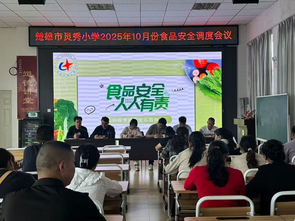 为持续强化校园食品安全管理,守护全体师生“舌尖上的安全”,2025年10月30日下午,灵秀小学召开10月份校园食品安全月调度会议。学校领导班子、总务处工作人员、红双渠楚雄农业发展有限公司负责人、校园膳食监督家长委员会家长及食堂全体工作人员参加会议,会议由校长甘清梅主持。