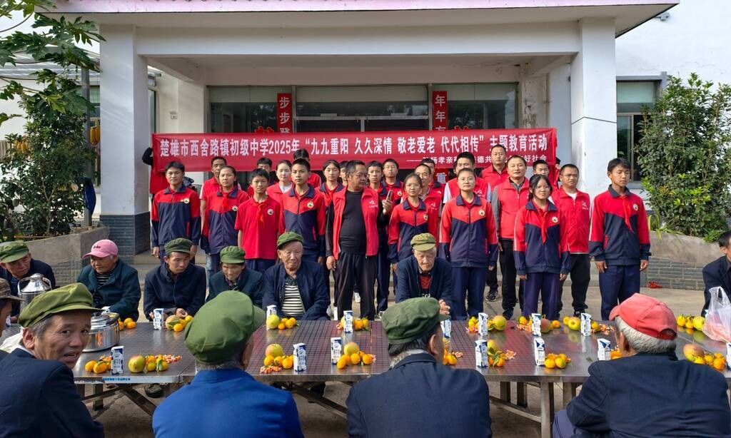 “爷爷,您坐好,我再给您捶捶肩!”“奶奶,这橘子甜,您多吃点。”金秋十月,丹桂飘香,西舍路敬老院里满是欢声笑语。在九九重阳节当天(10月29日),楚雄市西舍路镇初级中学党支部组织党员教师与学生代表,带着真挚关怀走进敬老院,以“九九重阳 久久情深 敬老爱老 代代相传”为主题,用青春身影与暖心行动,为这里的老人们送上了一场充满爱与敬意的节日陪伴,让传统孝善文化在温情互动中悄然传递。