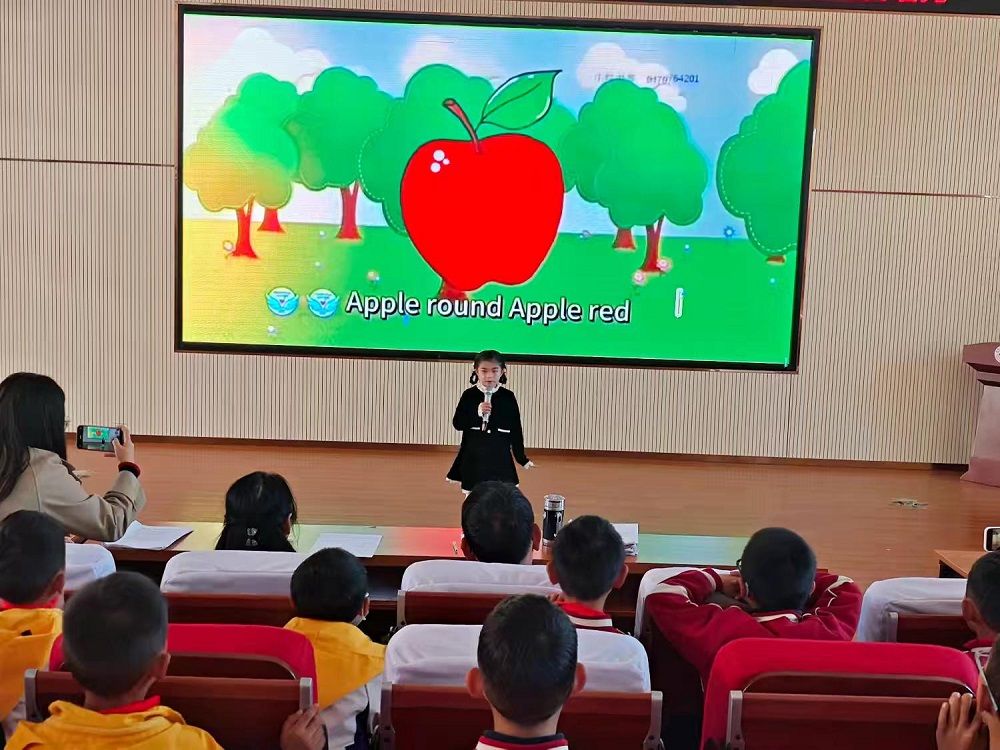 一、二年级的“童声飞扬”英文歌曲演唱秀,是本周最清脆悦耳的篇章。小同学们穿着整齐的服装,手持自制的道具,用清澈的嗓音演唱着《Hello Song》《Apple Tree》《Colour song》等经典儿歌。孩子们化身为小小的歌唱家,用稚嫩而纯真的嗓音,唱出了对英语最初的热爱。他们或许还不完全理解歌词的深意,但那准确的发音、模仿得惟妙惟肖的语调,已让每一个音符都载着自信与快乐,飞扬在校园的每个角落。这最初的音乐,正是融化畏难情绪的第一缕阳光。他们用最简单的旋律,诠释着“兴趣是最好的老师”,也让在场的老师和家长看到了英语启蒙的美好模样。