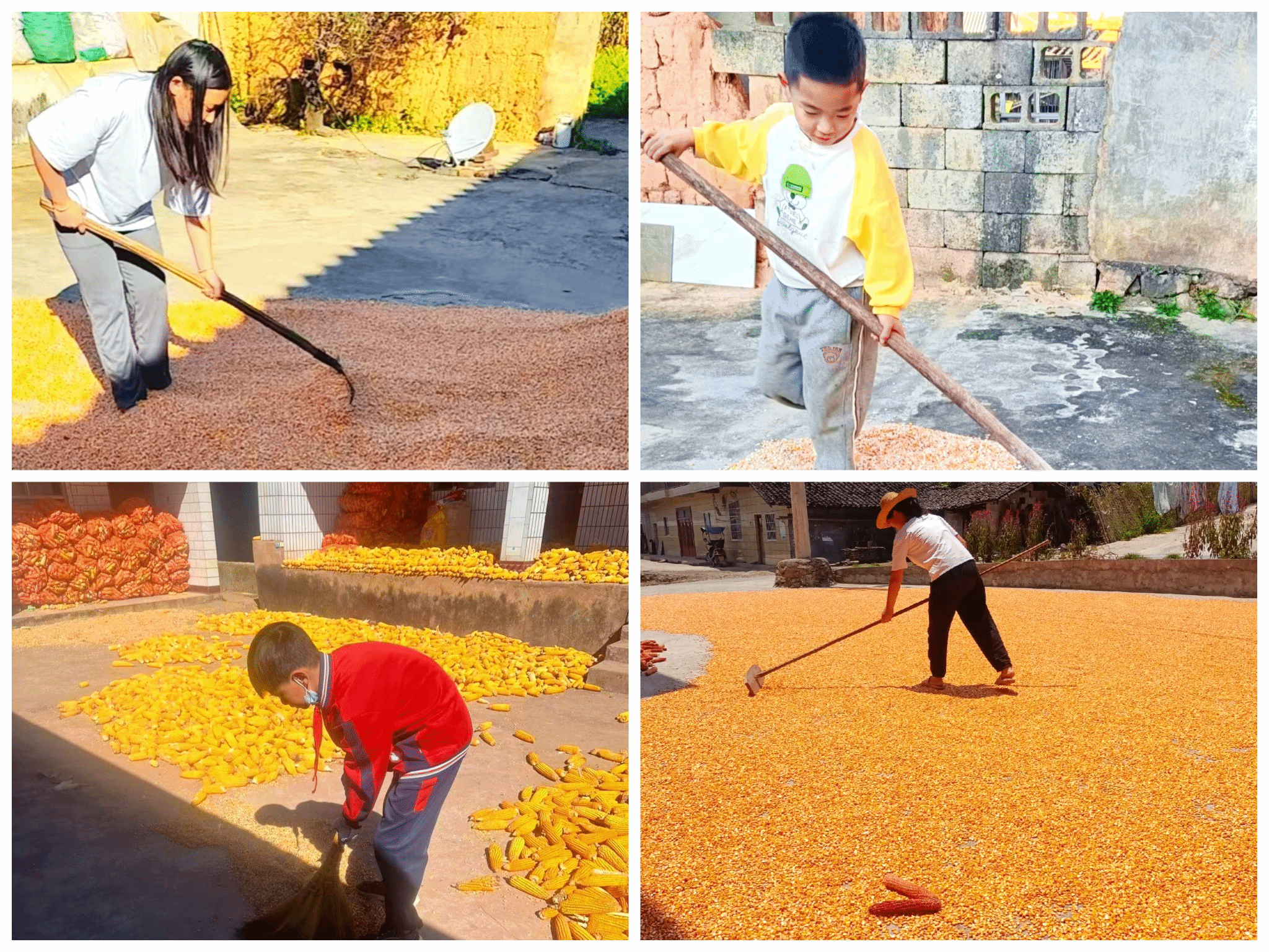 院场子晒成果懂得“守成赖恒心”。孩子们牢记老师叮嘱,每天定时和家人一起摊开玉米,午后及时翻动,傍晚收拢成堆。从枯燥到主动坚守,他们体会到“守护成果”的责任,明白劳动与成长都需持之以恒。