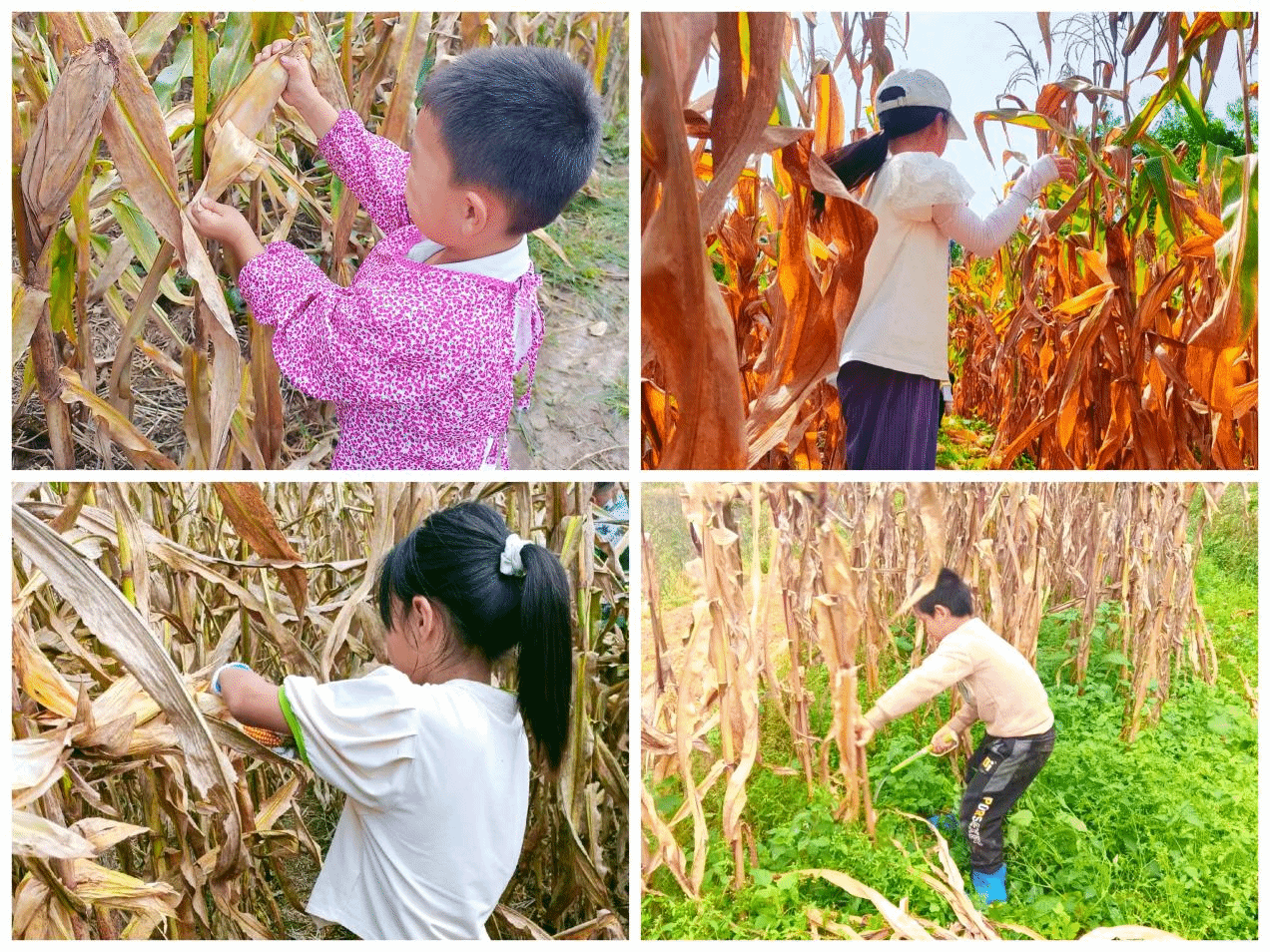 田地头掰玉米感知“粒粒皆辛苦”。带着班会认知,孩子们走进玉米地。沉甸甸的玉米棒压弯秸秆,锋利叶片不时划伤手臂,重复的弯腰、发力动作让孩子们很快气喘吁吁,汗水浸透衣衫。“才半小时腰就酸了,爸妈每天干农活太辛苦了!”真切地感叹中,劳动的艰辛不再是书本描述,珍惜粮食的种子悄然发芽。
