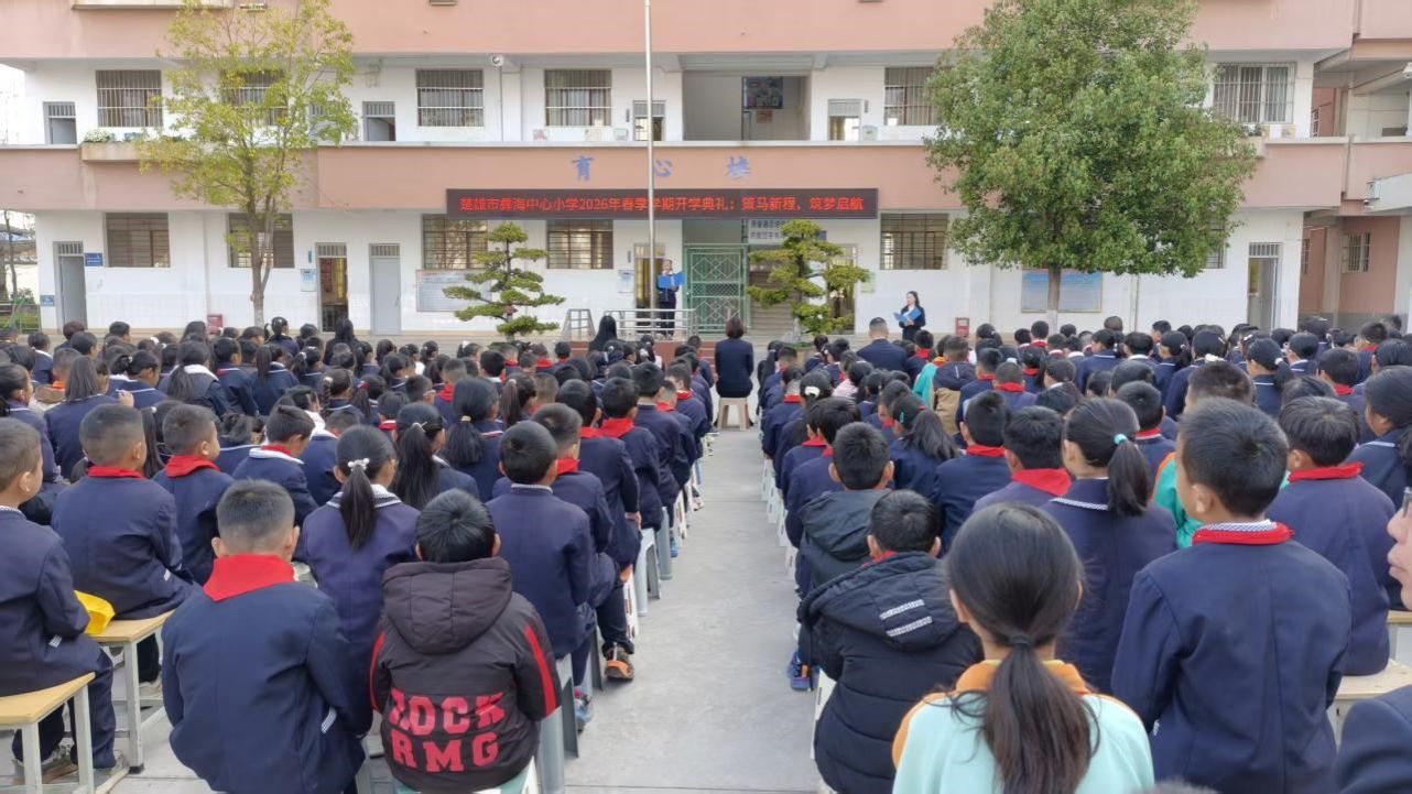 春启新程,万象更新。3月5日上午,楚雄市彝海中心小学2026年春季学期开学典礼在学校操场盛大启幕,全体师生齐聚一堂,以昂扬向上的姿态,共同开启新学期的逐梦之旅。本次典礼以“策马新程,筑梦启航”为主题,既有庄重仪式感,又饱含深刻教育意义,为新学期校园生活奠定了积极奋进的鲜明基调。