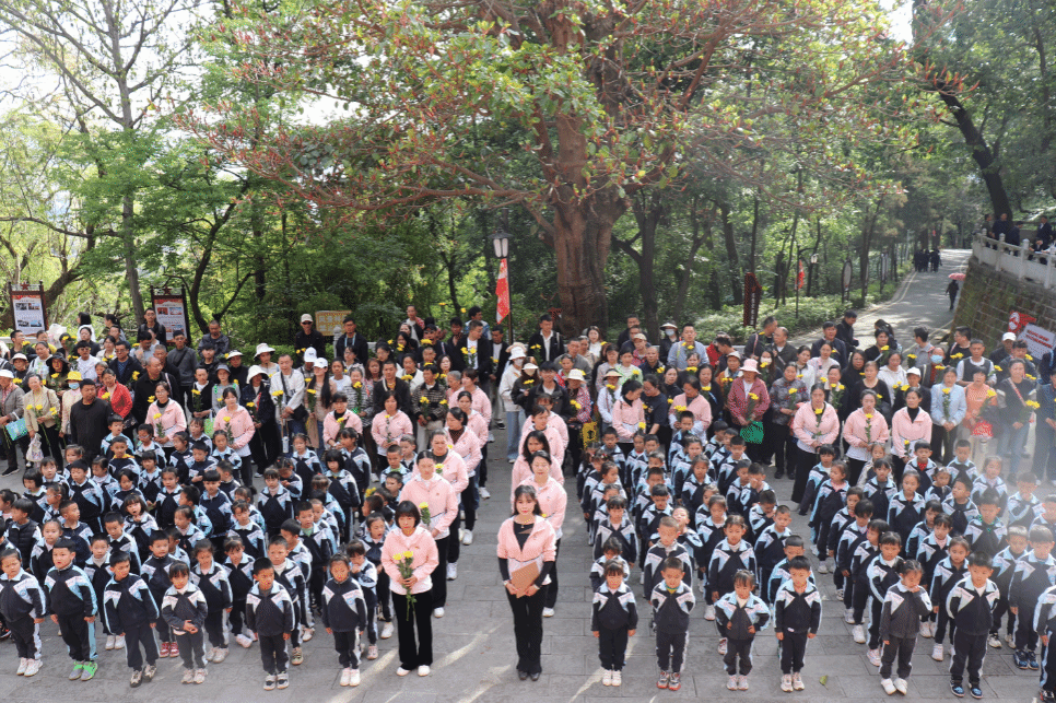 春风寄哀思,清明忆英烈。为深切缅怀革命先烈,传承红色基因,厚植爱国情怀,4月1日上午,楚雄市机关幼儿园党支部组织全体在职党员、大班师幼及家长,到西山公园爱国主义教育基地,开展“缅怀革命先烈、弘扬英烈精神、凝聚奋进力量、勇担时代使命”4月主题党日暨2026年清明祭英烈活动。途中,小朋友和家长以徒步集章的形式前往爱国主义教育基地,赋予这段路程不一样的意义。 全体师幼肃立,奏唱国歌后活动正式开始。