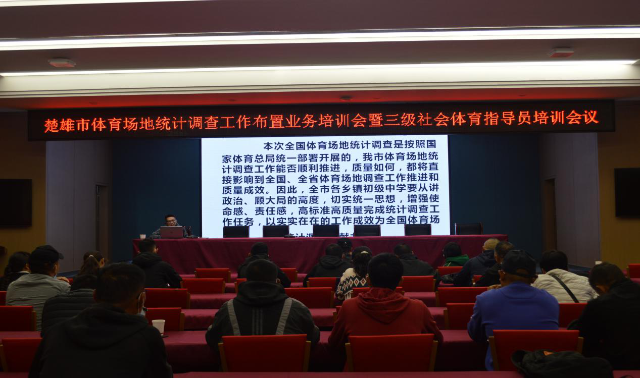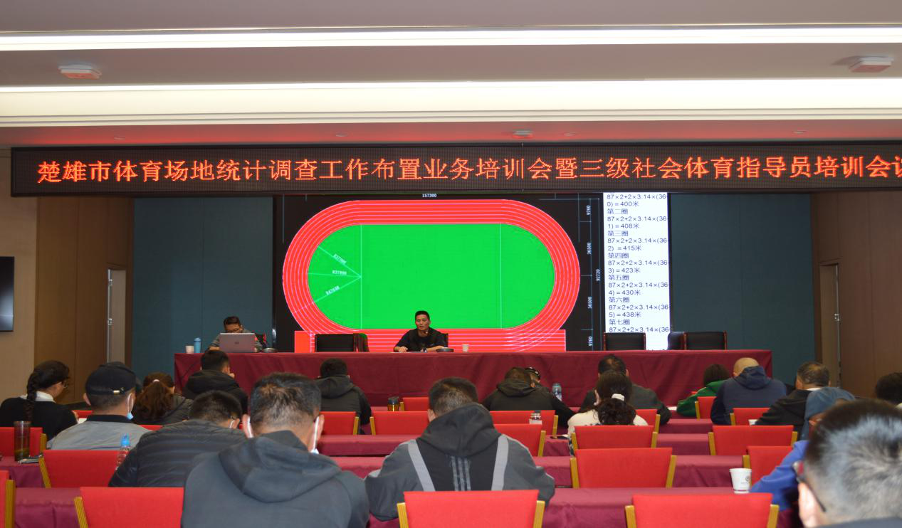 为深入贯彻落实《体育强国建设纲要》,根据《云南省体育局关于做好2021年体育场地统计调查工作的通知》要求,2021年10月18日市教育体育局举办了2021年楚雄市体育场地统计调查工作培训班。来自各乡镇初级中学和市教育体育局体育科、少体校相关同志25人参加了本次培训。市教体局副局长王存银同志出席开班仪式并讲话。