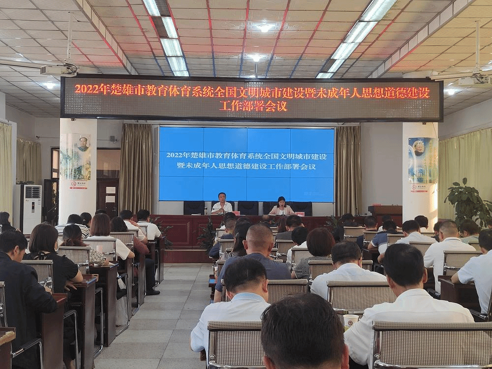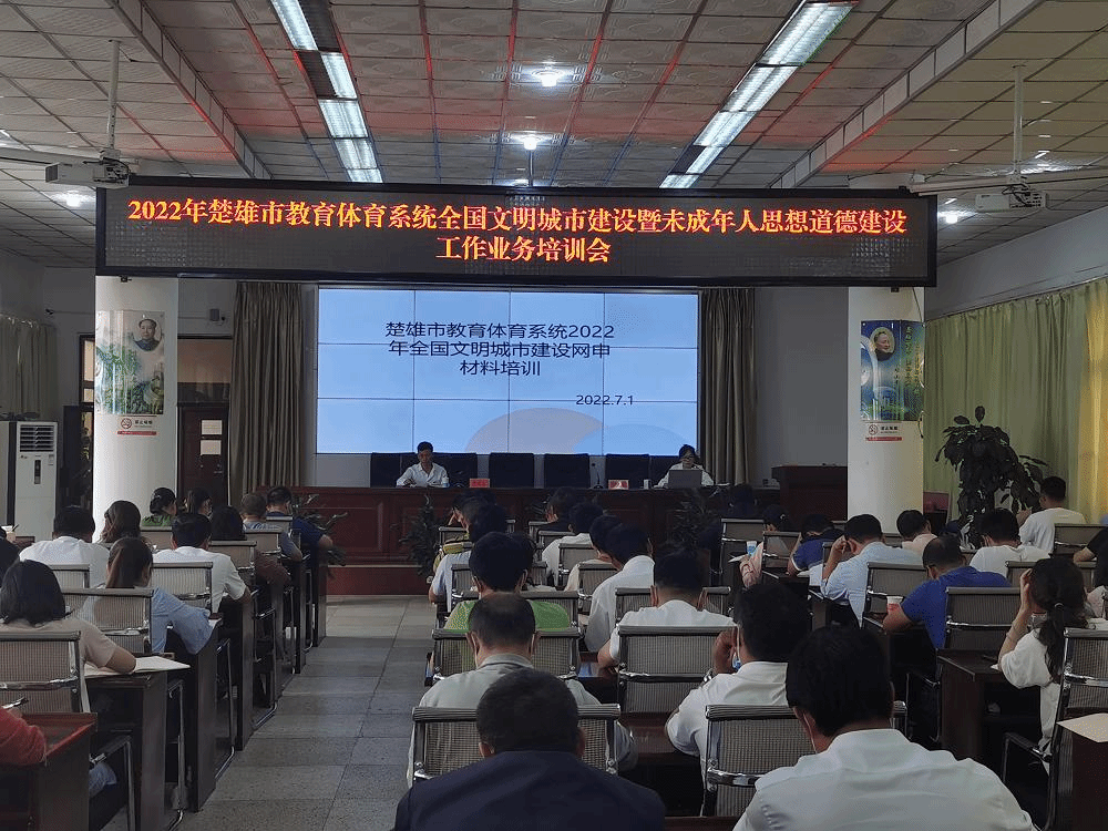 会议分两阶段进行,第一阶段主要对楚雄市教育体育系统2022年全国文明城市建设和未成年人思想道德建设作安排部署。第二阶段对网申材料、实地督查、问卷调查工作做了系统培训。