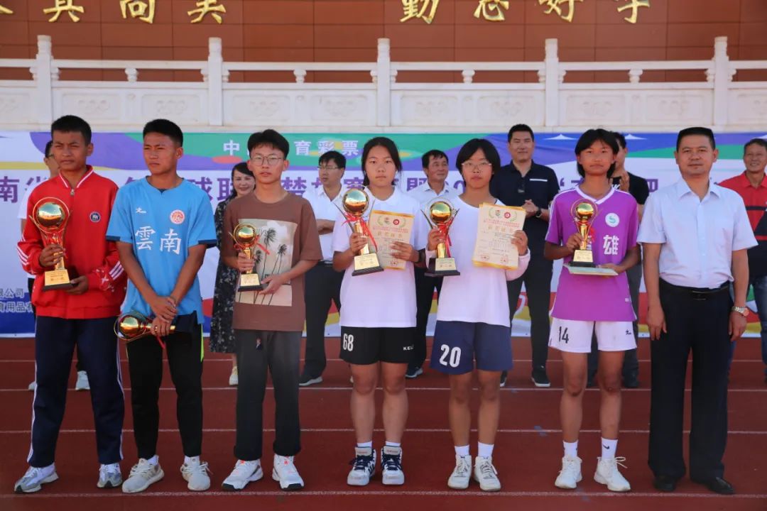 市教育体育局局长徐林宗为获得高中男女子组别的参赛队伍进行了颁奖,紫溪中学校长洪云为初中男女子U15年龄组进行了颁奖,楚雄市足球协会主席姜云秋为初中男子U13年龄组颁奖,楚雄市教育体育局体育科科长巴立新、楚雄市业余少体校校长尹鸿彬、省足协执委、楚雄市足球协会党支部书记胡程恭、楚雄市足球协会秘书长汪红兵、楚雄市户外运动协会秘书长唐红梅同志分别为获得小学女子U8、U10、U12组别以及优秀裁判员、运动员、体育道德风尚奖的参赛队伍进行了颁奖。