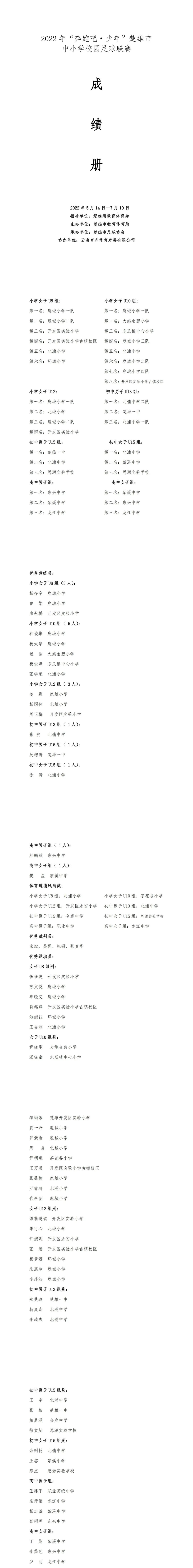2022年7月10日下午,云南省青少年足球联赛楚雄赛区暨2022年“奔跑吧·少年”楚雄市中、小学校园足球联赛第一阶段的比赛颁奖仪式在楚雄紫溪中学足球场举行。
