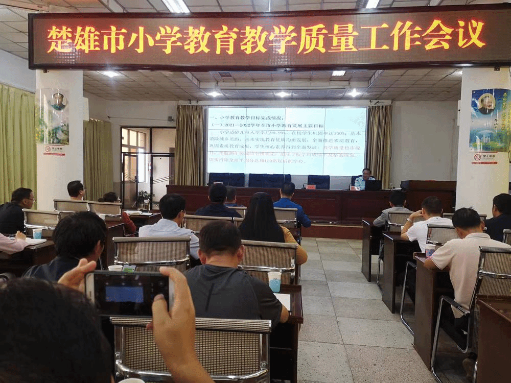 为了推动楚雄市中小学育人一体化,构建全流程、全链条育人体系,为学生的后续学习打下坚实的基础,提供持续动力,9月30日,楚雄市小学教育教学质量工作会在楚雄市教育体育局六楼会议室召开。会议全面总结分析2021-2022学年全市小学教育教学质量情况,查摆教学工作中存在的问题,研究教学改进工作,部署2022-2023学年全市教育教学工作的目标任务。全市市属各小学校长、主抓教育教学质量的科室主任、市教科所全体教研员共60多人参加会议。