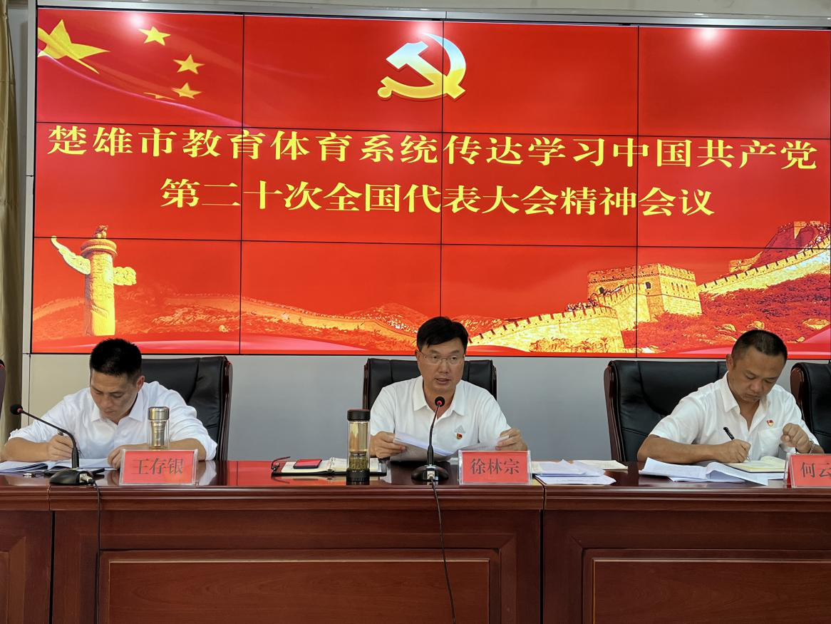 10月30日下午,楚雄市教育体育局召开全市教育体育系统传达学习党的二十大精神会议。市委教育工委书记、市教育体育局党组书记、局长徐林宗出席会议并讲话。