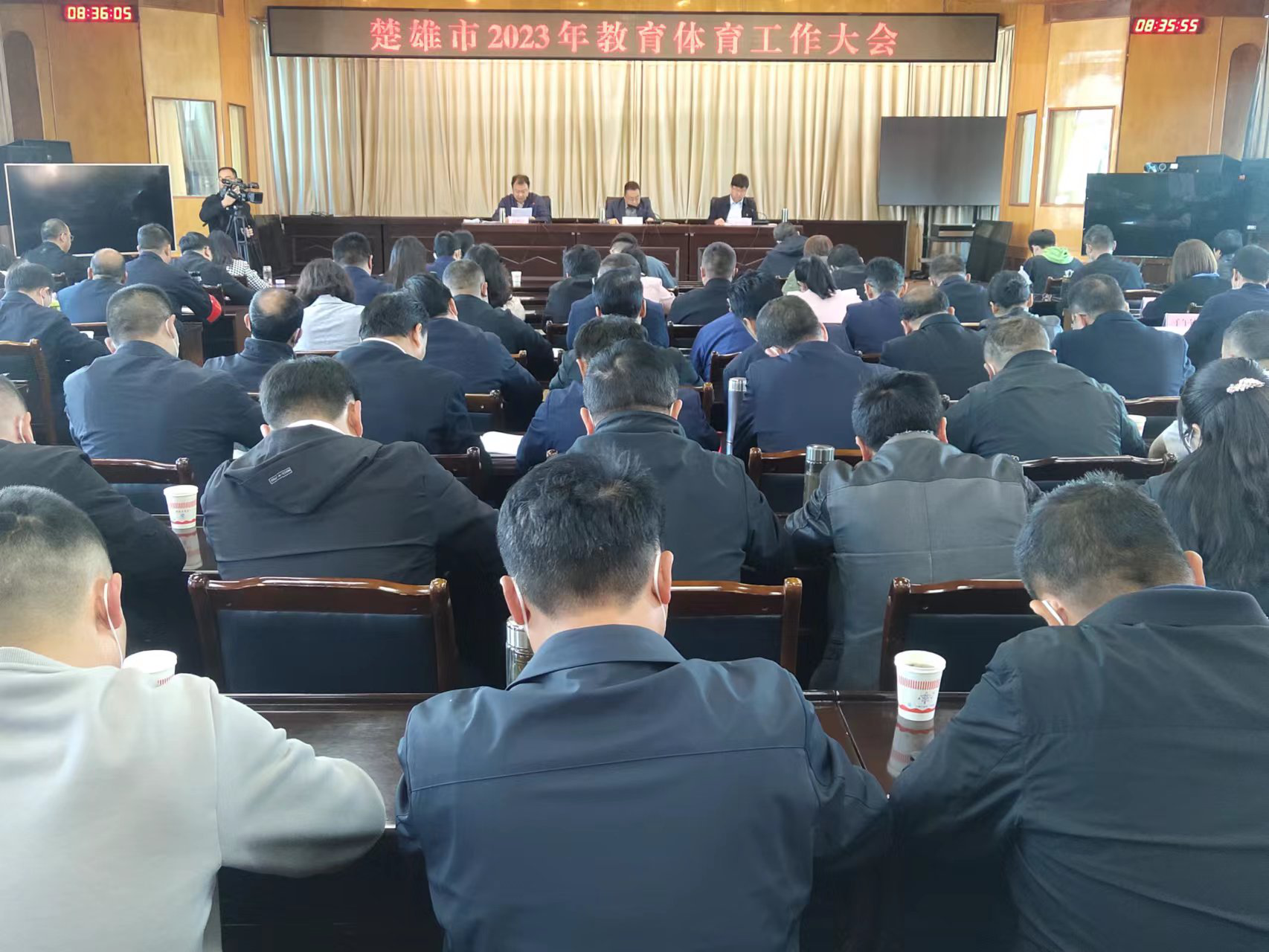 会上传达学习了楚雄州职业教育大会和2023年教育体育大会精神;市委教育工委书记、市教育体育局党组书记、局长徐林宗向会议作报告。