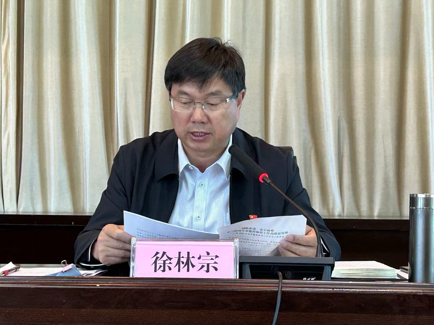 徐林宗指出:要乘势而为,守正创新,着眼未来再创教育体育发展新局面。一是筑牢思想政治根基,持续推进“党建引领”工程,加强党对教育体育工作的全面领导。二是筑牢立德树人根基,持续推进“质量提升”工程,加装教育高质量发展新引擎。三是筑牢服务领航根基,持续推进“教育民生”工程,加强教育服务保障新能力。四是筑牢内生动力根基,持续推进“队伍建设”工程,加快教育人才培养新步伐。五是筑牢安全底线根基,持续推进“校园安全”工程,织密校园安全防控新网络。六是筑牢体教融合根基,持续推进“体育强市”工程,加持全民健康导向新热度。