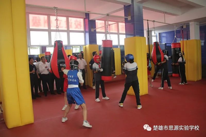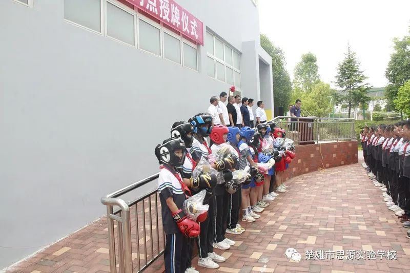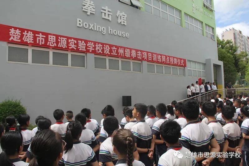 2023年7月6日下午,楚雄市思源实验学校举行了州级拳击项目训练网点揭牌仪式。州委教育工委委员、楚雄州教育体育局党组成员、副局长杨宝生,楚雄州教育体育局干部沈红江,楚雄技师学院体育运动系主任旷世雄,楚雄市教育体育局副局长王存银、体育科科长巴立新,楚雄市少体校校长尹鸿彬,学校领导班子、拳击队成员和部分学生参加了活动,活动由尹鸿彬主持。