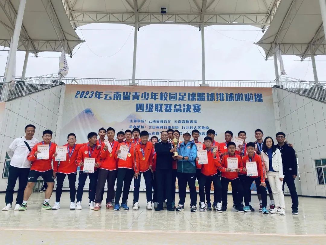 2023年10月28日云南省青少年校园足球、篮球、排球、啦啦操四级联赛总决赛足球比赛在文山州丘北县结赛。楚雄东兴中学男足获得全省冠军的优异成绩!本次冠军是我校继2022年青少年足球四级联赛高中男子组冠军后的又一冠军!