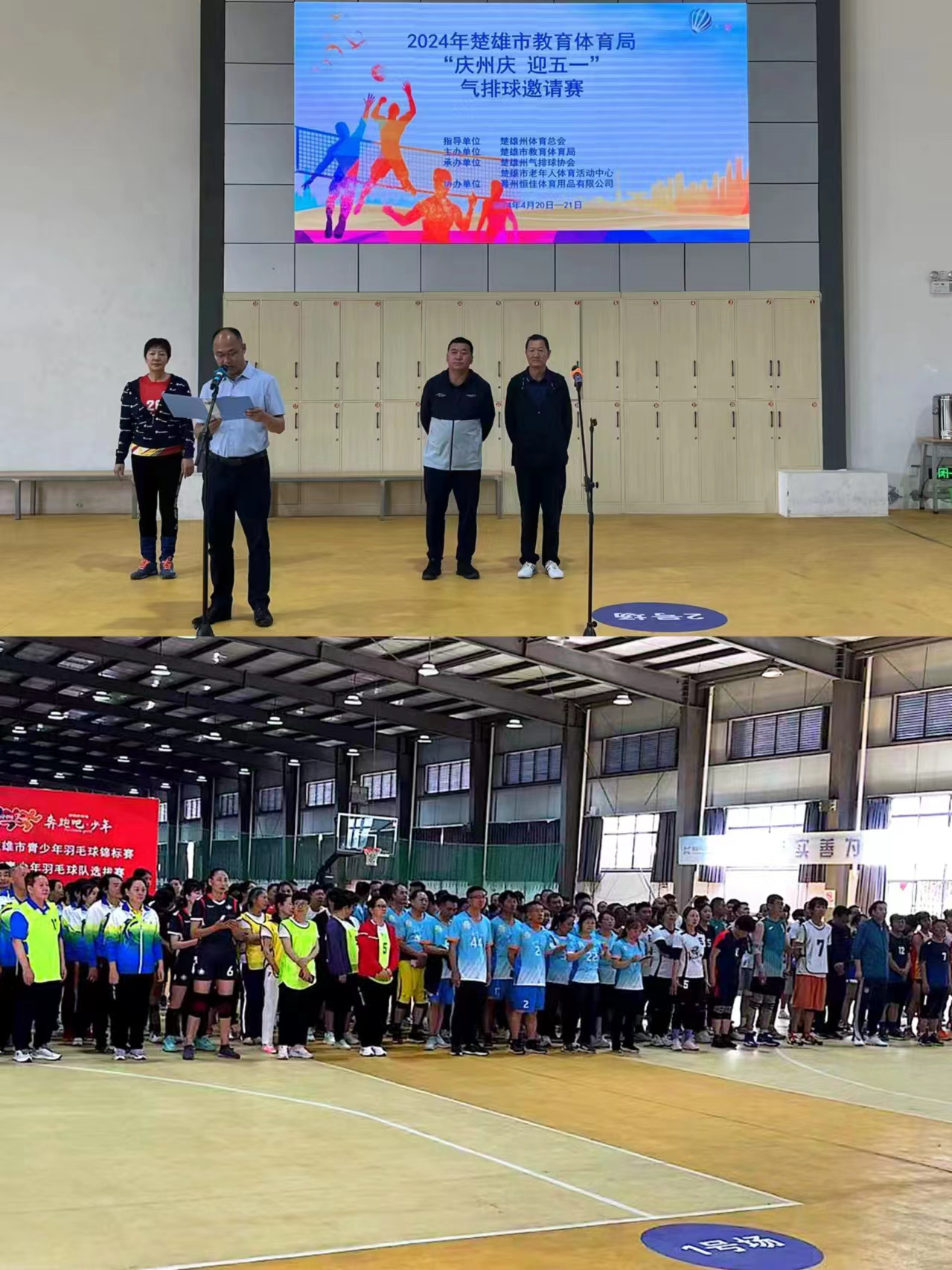 在开幕式上,市委教育工委副书记、市教育体育局副局长苗云发表了热情洋溢的致辞,对各位参赛队员、教练员、裁判员表示诚挚的欢迎,并强调体育比赛在推动单位间交流、增进友谊、提升职工身体素质等方面的重要作用,同时表达了对本次比赛圆满成功的美好祝愿。楚雄州教育体育局副局长王建华宣布2024年楚雄市教育体育局“庆州庆·迎五一”气排球邀请赛——开赛。