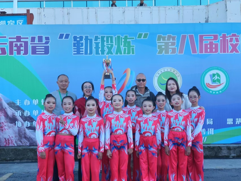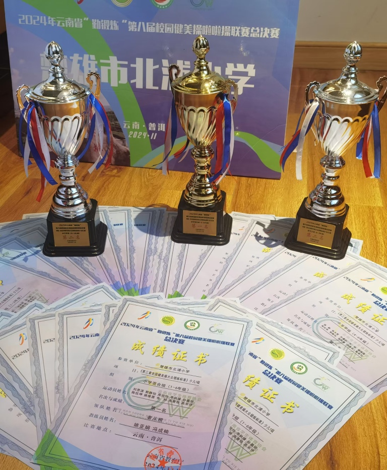 本次比赛由云南省教育厅主办,来自全省各地州的队伍汇聚一堂,展开了的激烈角逐。北浦小学健美操啦啦操代表队,在领队者从根副校长的带领下,共派出姚亚娟、宋春奎、钱虎益三名带队教师,24名运动员参加比赛。经过激烈的角逐,我校健美操队在众多参赛队伍中脱颖而出,荣获大众健美操少儿一级小学组第一名、小学甲组第二名和小学乙组第二名。
