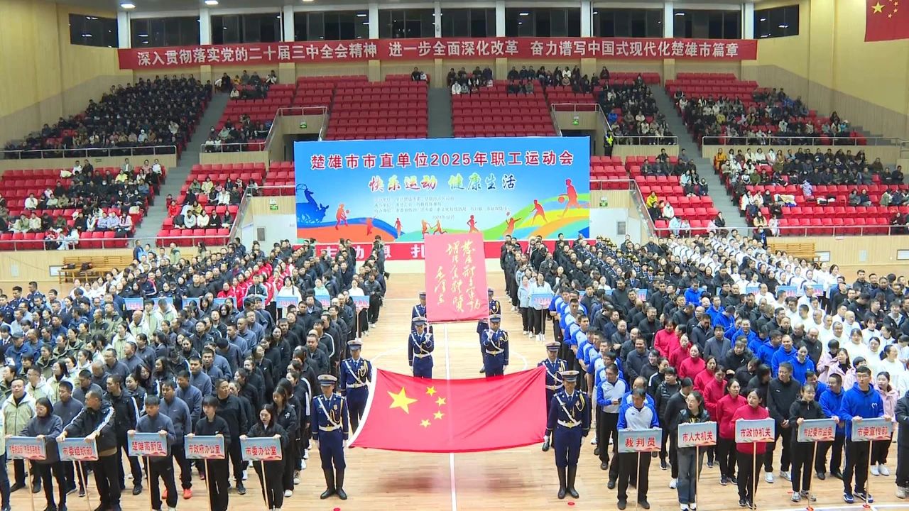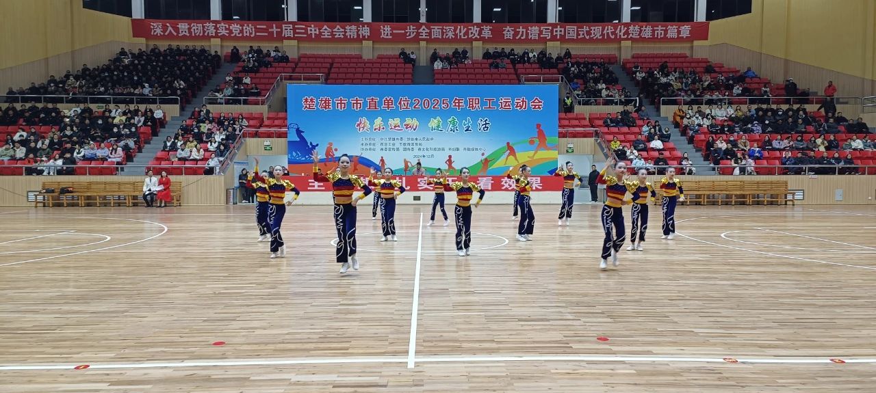 12月27日晚,楚雄市市直单位2025年职工运动会开幕式在州体育馆举行。