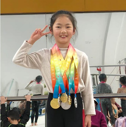 李思绮是云荫寺校区一年级12班的学生,她在此次比赛中获得了三枚金牌。李思绮站在体育馆内,脖子上挂着金色奖牌,显得格外耀眼。她的成功离不开平时的努力与坚持,更体现了鹿城小学注重培养全面发展人才的教学理念。
