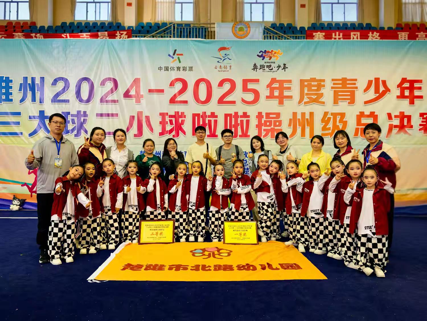 2025年4月12日—14日,楚雄州2024 - 2025年度青少年校园三大球二小球啦啦操州级总决赛在大姚举办,楚雄市北路幼儿园的小运动员们在比赛中表现卓越,最终荣获幼儿组街舞啦啦操一等奖、爵士啦啦操二等奖的优异成绩,特此向全体师生、家长及关心幼儿园发展的各界人士报喜!