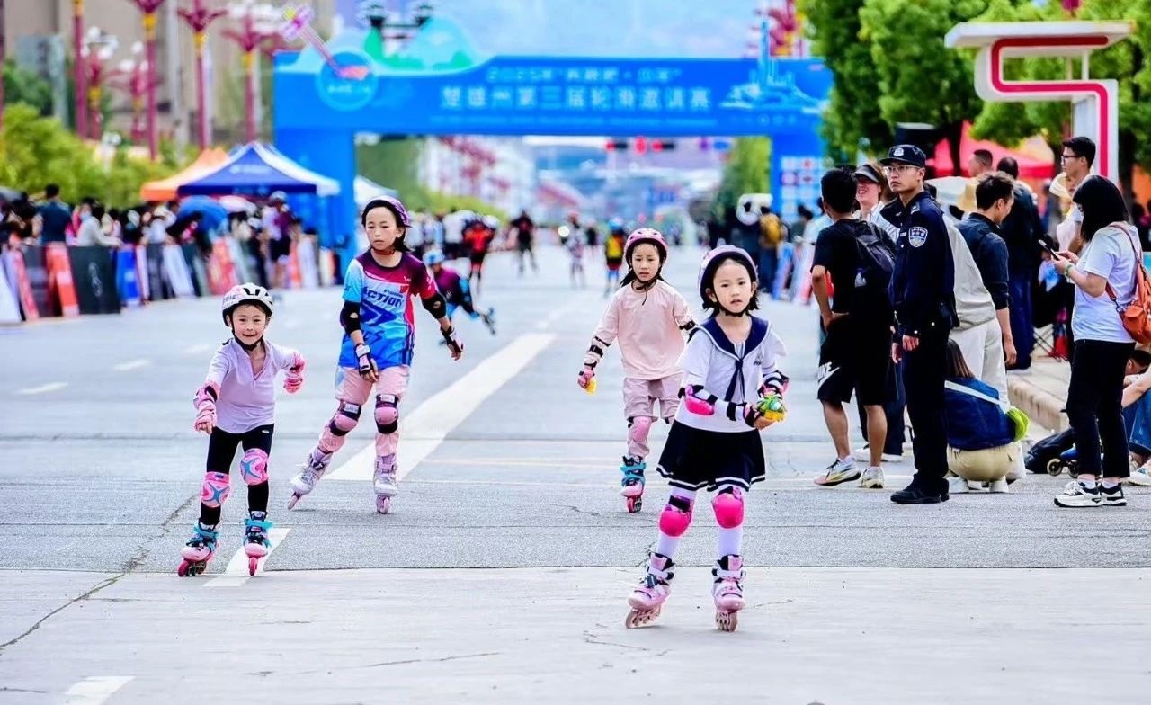 5月1日至3日,由楚雄州教育体育局、楚雄州文化旅游局、楚雄市人民政府、云南省轮滑运动协会指导,楚雄市冰雪轮滑协会主办的2025年楚雄州“体育赛事进景区、进街区、进商圈”暨“奔跑吧少年”楚雄州第三届轮滑邀请赛在楚雄市举行,来自全省16个州市和四川攀枝花市、凉山州共计105支代表队、近1300名轮滑小将再聚彝乡,在楚雄的青山绿水间展开速度与激情的角逐,尽展轮滑风采、共享运动乐趣。