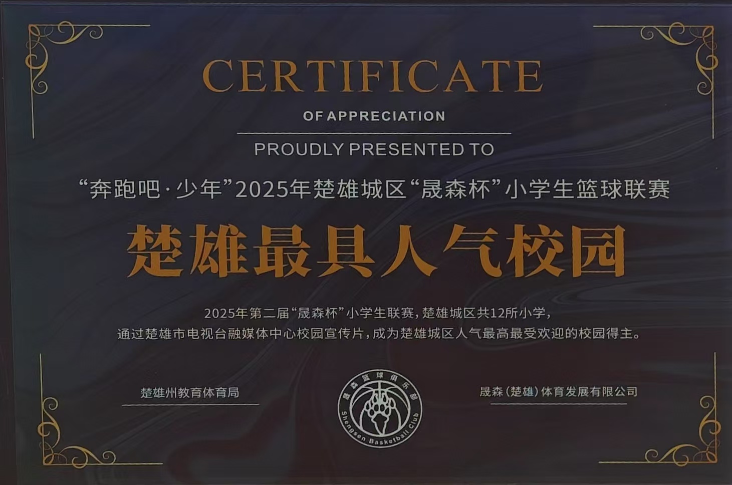 荣誉的背后,是小球员们无数个日夜的刻苦训练,是教练团队的精心指导。同时,学校荣获“楚雄最具人气校园”称号,是通过楚雄市电视台融媒体中心校园宣传片,在楚雄城区12所小学中脱颖而出,成为人气最高最受欢迎的校园得主,这也充分彰显了学校在文化传播和校园影响力方面的卓越成效。