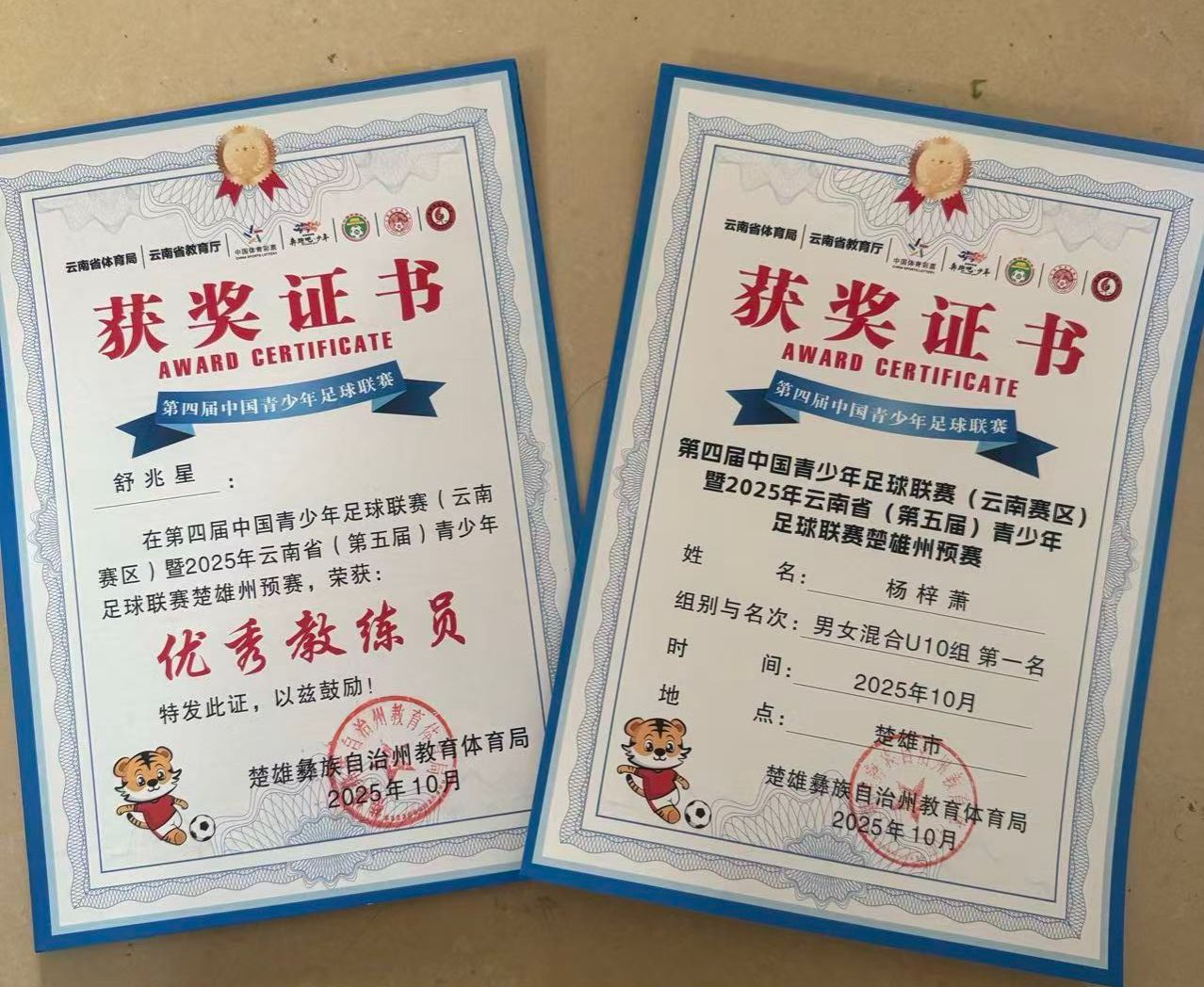 当终场哨声响起,欢呼与掌声响彻赛场——楚雄市北城小学U10男女混合梯队,在2025年10月落幕的“第四届中国青少年足球联赛(云南赛区)暨2025年云南省(第五届)青少年足球联赛楚雄州预赛”中,凭借过硬实力、顽强斗志与默契协作,一路过关斩将,最终摘得男女混合U10组桂冠,为学校争光,为楚雄足球少年添彩!