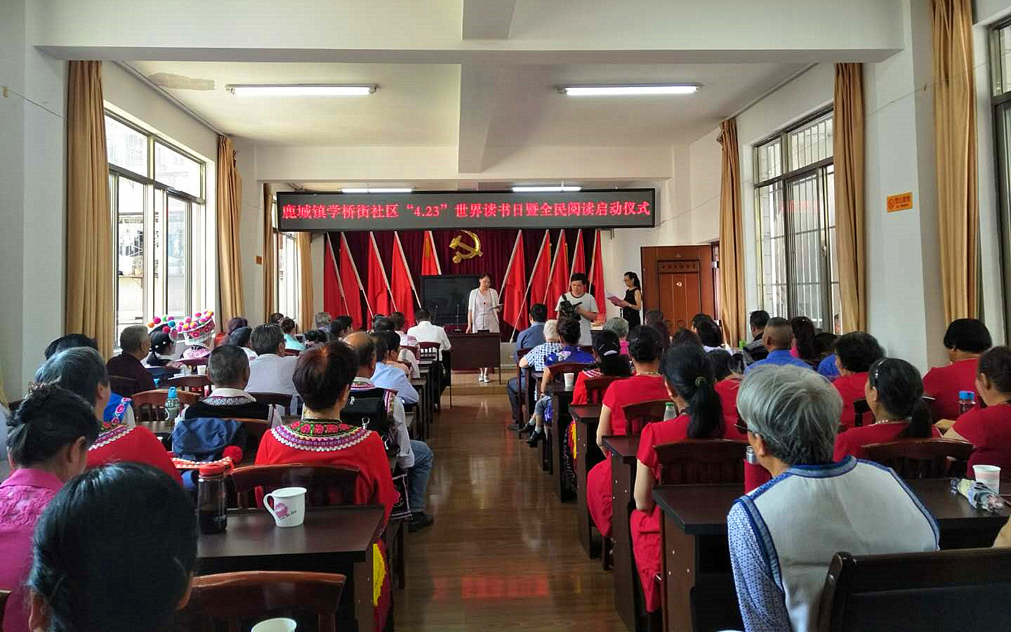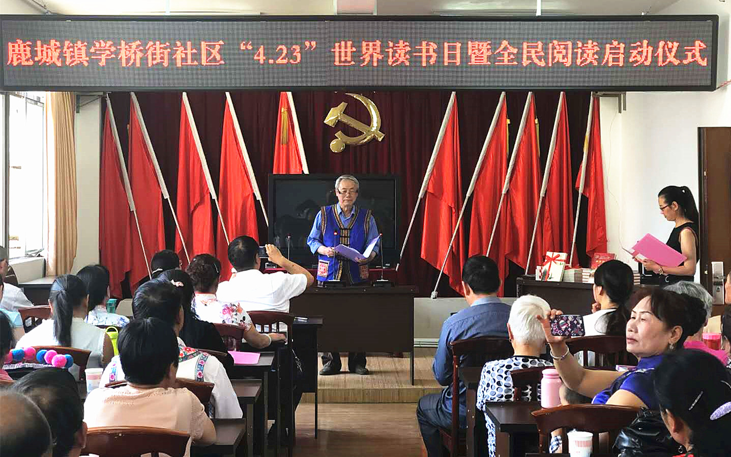 “全民阅读”是提升国民文化素质,构建现代公共文化服务体系,建设社会主义文化强国,实现中华民族伟大复兴的中国梦具有重要战略意义。为认真贯彻落实习近平总书记系列重要讲话精神,推进学习型社会建设,促进社会文化繁荣发展,推动全民阅读活动走向深入。4月26日,楚雄市鹿城镇学桥街社区以“书香鹿城,万卷共知”为主题,组织市老年大学教师、学员和居民代表共80多人开展2019年“世界读书日”全民阅读活动。