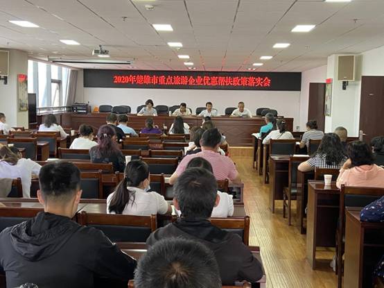 为认真贯彻落实省、州、市各级全面加快企业复工复产复市,做好稳企稳岗稳就业工作的精神,助力楚雄市各星级旅游饭店、旅行社、景区等重点旅游企业复产复工,实现全年接待人数、旅游收入增长保持在10%以上,实现2020年文化旅游产业增加值10%以上的目标,2020年5月6日,楚雄市文化旅游局召开了楚雄市重点旅游企业优惠帮扶政策落实会。