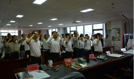 重温入党誓词。全体党员面对党旗庄严宣誓,铿锵有力的声音传达出了身为共产党员的自豪感与使命感。