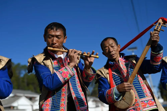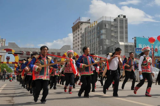 民间大三弦舞艺人参加彝族火把节楚雄城区巡演