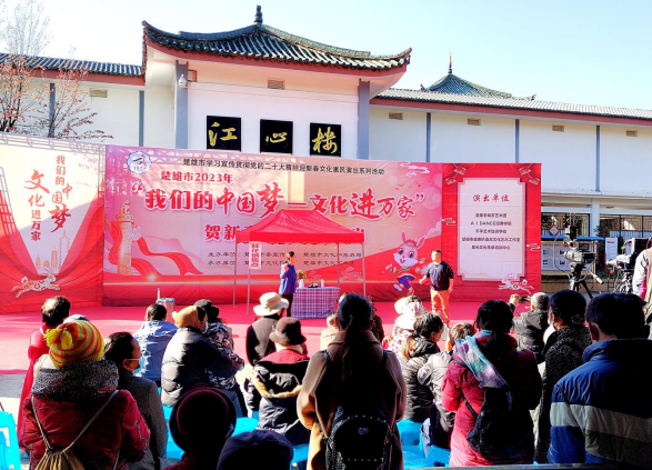 春节期间,楚雄市围绕“我们的节日·春节”主题,营造欢乐祥和的节日氛围,推出春节文化展览展示、文艺演出、非遗民俗等丰富多彩的文化惠民活动100余场,观众达22.98万人,线上参与人数达11.69万人。全市开展了“我们的中国梦—文化进万家”贺新春专场文艺演出、“义写春联迎卯兔·浓浓墨香贺新春”送春联、趣味剪纸和中国春节传统模式主题展、文艺精品线上展播等一批形式多样、广受欢迎的新春主题活动。彝人古镇推出的彝乡恋歌、祭火大典、篝火狂欢等活动吸引各地游客慕名而来体验彝族春节。同时,马龙河流域沿线举办了“游风情热谷 品乡村美食—云南·楚雄马龙河风情热谷乡村旅游文化节”,让广大游客和群众在新春佳节期间,观看当地传统文化表演、品鉴特色美食、参与有机果蔬采摘等活动,过一个不一样的春节。