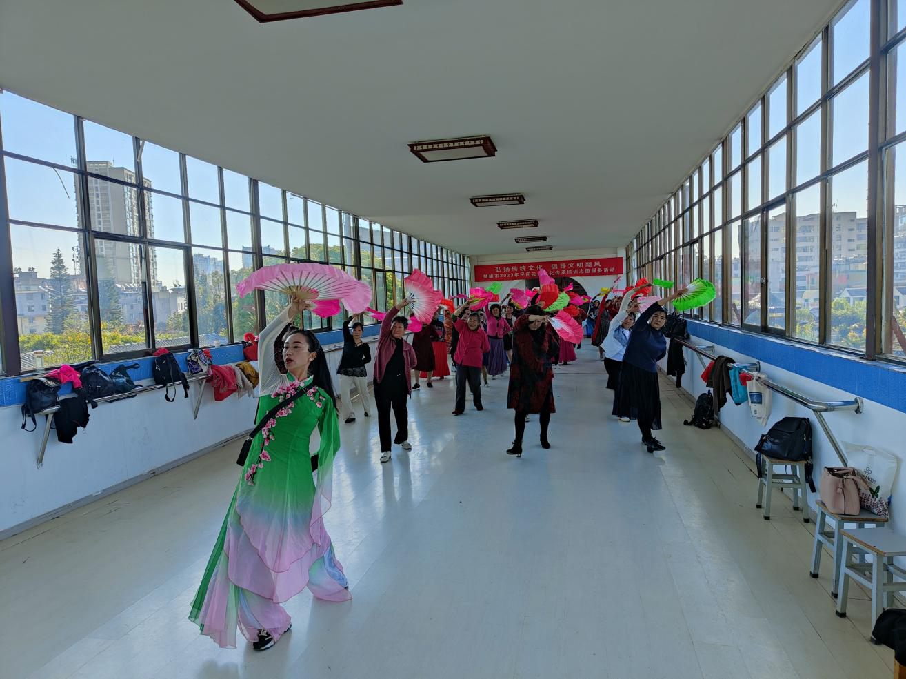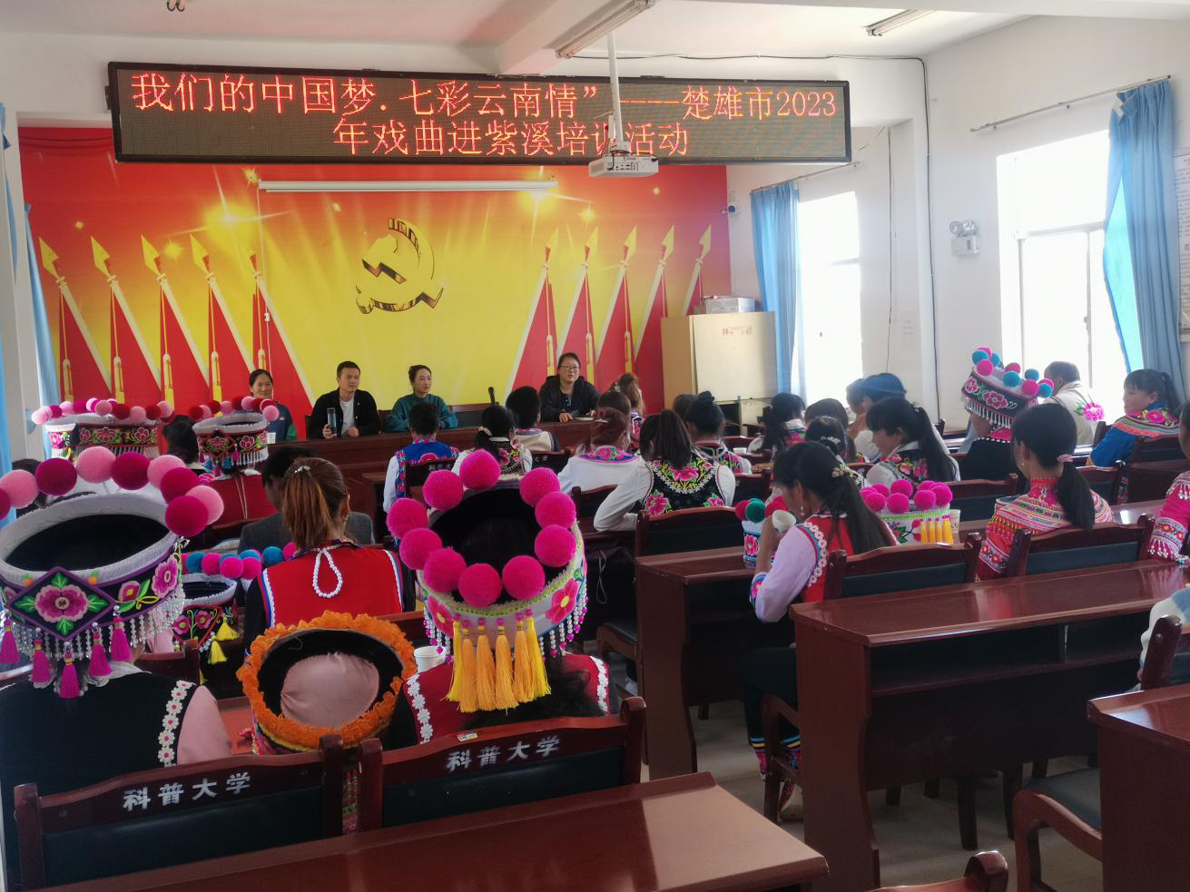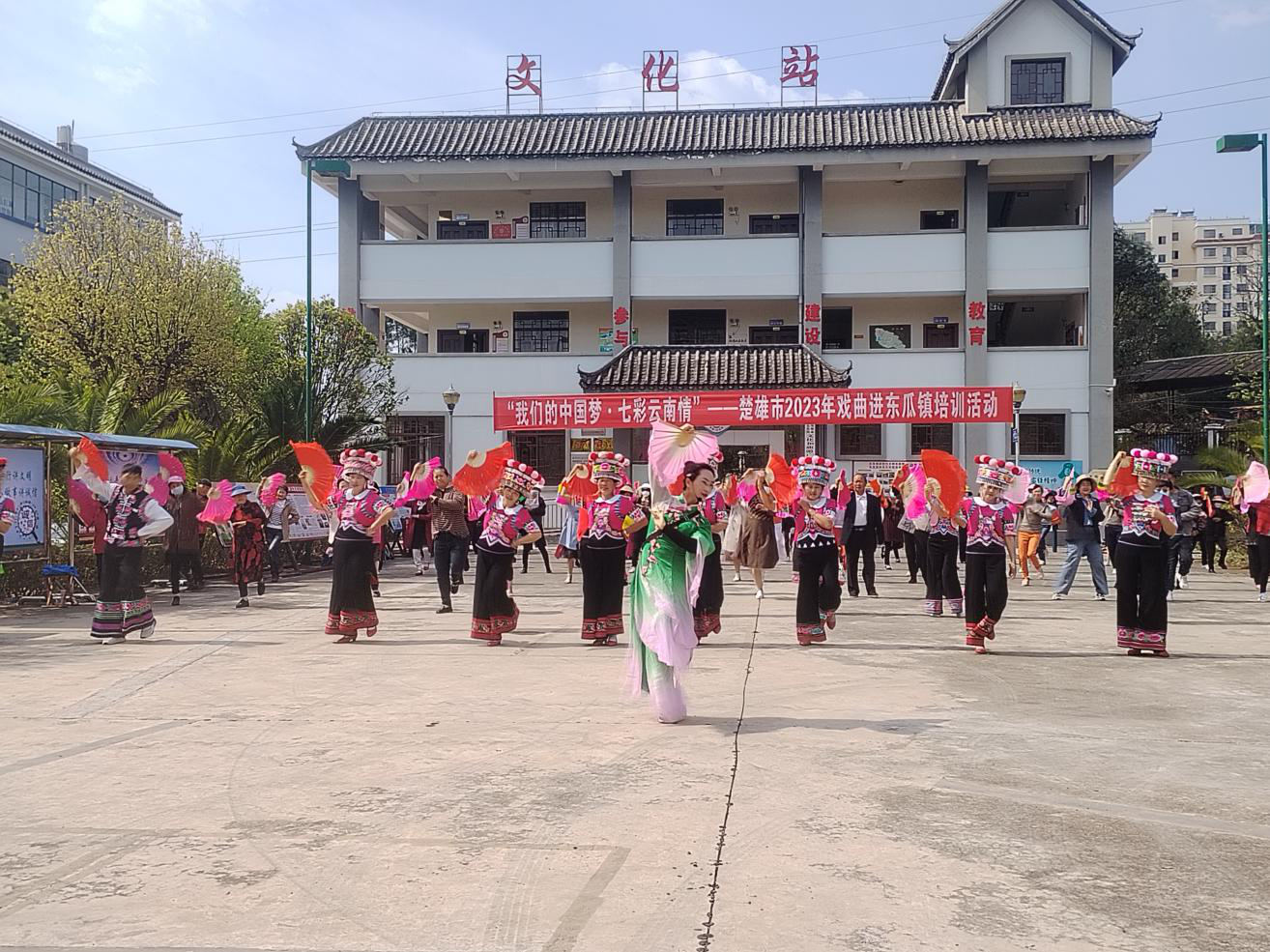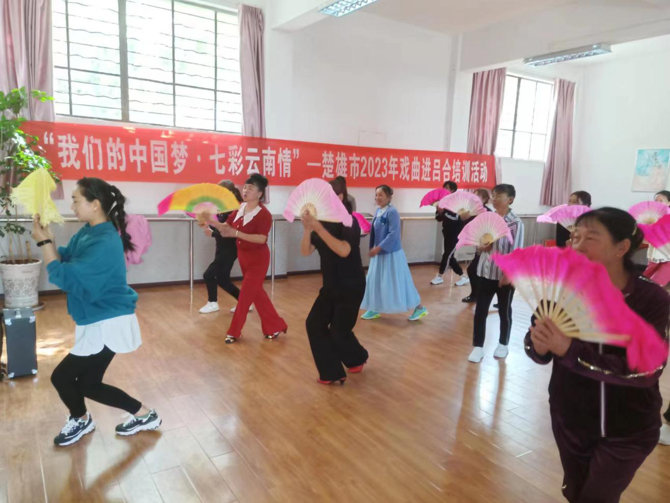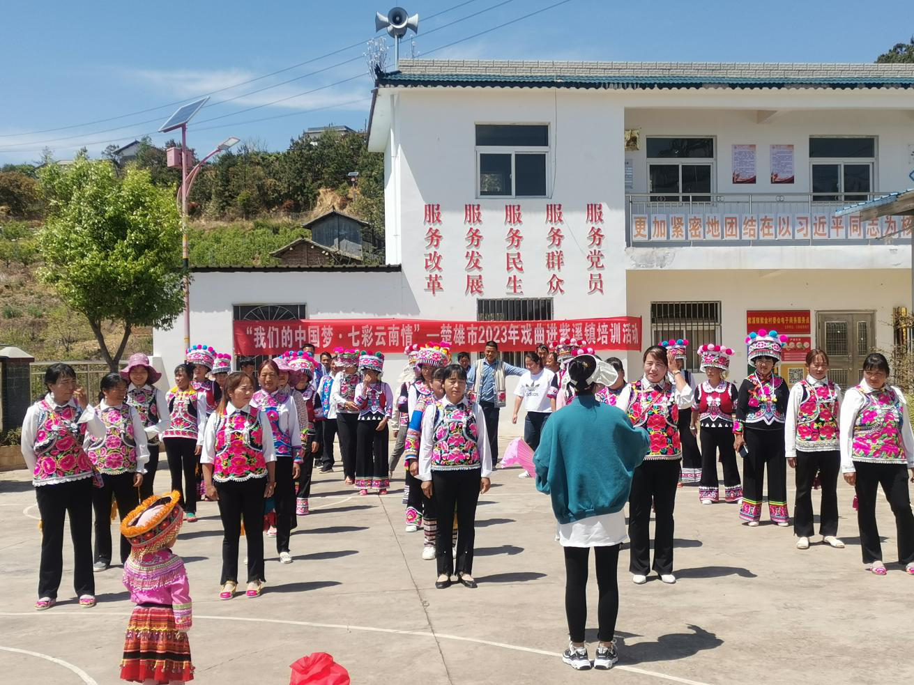 为进一步宣传贯彻落实党的二十大精神,弘扬传承中华优秀传统文化,认真贯彻实施中央、省、州的文件要求,楚雄市文化馆联合楚雄市文化艺术团于2023年3月底到4月初举办了2023年“我们的中国梦·七彩云南情”戏曲进乡村培训班,此次培训涵盖了楚雄市东华、苍岭、吕合、东瓜、紫溪、鹿城6个乡镇文化辅导员及镇属业余文艺团队骨干,历时十多天,共有400多人参加培训。鉴于楚雄市以花灯表演为主要演出形式,本次培训以花灯表演中的扇花组合练习、崴步组合练习、花灯组合舞段练习为主要内容,培训采用“示范引领+一对一指导+面对面点评”的方式,上午集中开展花灯表演培训,下午团队依次表演,专业老师一对一进行现场指导和现场点评的方式开展教学,同时乡镇文化站工作人员还录制了教学视频发给各位基层业余文艺团队领队,让学习融入日常。