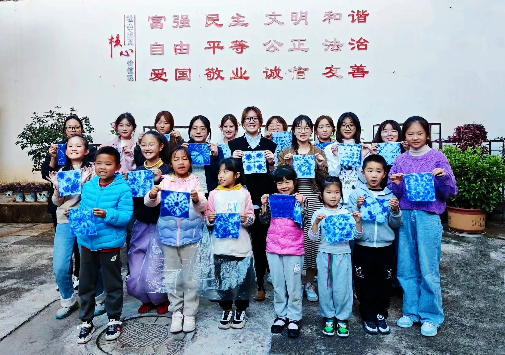 艳阳高照,非遗传承,12月3日下午,楚雄市图书馆联合楚雄师范学院的大学生文化志愿者,在一楼少儿阅览室举办了2023年社会主义核心价值观教育活动,体验了“板蓝根的神奇魔法”—云南非遗文化白族扎染技艺。