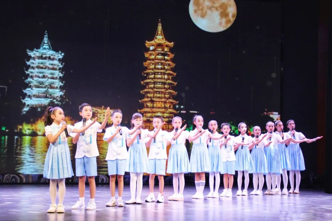 演出在欢快与和谐《热闹的荷塘》开场舞蹈中拉开帷幕,孩子们用灵动的舞姿展现出蓬勃朝气。随后,音诗画《月光下的中国》、古筝二重奏《就是哪吒》、活力四射爵士舞《一粒米》和拉丁舞《欢迎来到80年代》推向演出高潮,情景朗诵《如果没有李白》、民族舞《藏风美少年》《风吹稻花香两岸》《我想翻过那座山》等节目依次登场。小朋友们全情投入,用甜美的歌声、深情的朗诵和优美的舞蹈,表达对传统文化的热爱,展现新时代少年儿童的风采,赢得台下观众阵阵掌声和欢呼声。