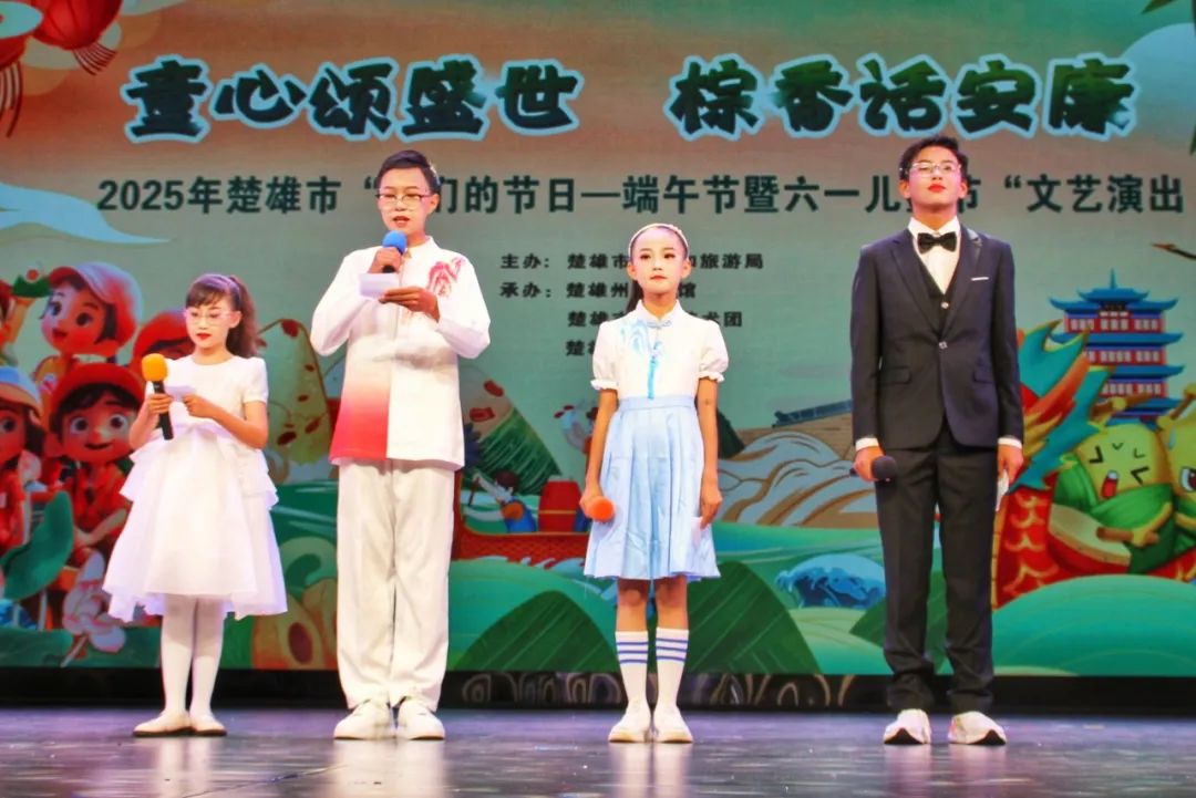 5月25日19:30由楚雄市文化和旅游局、楚雄州文化馆、楚雄市文化艺术团、楚雄市文化馆联合举办的“童心颂盛世 粽香话安康——2025年楚雄市我们的节日·端午节暨六一儿童节”文艺演出在楚雄州文化馆小剧场精彩上演。现场热闹非凡,洋溢着欢乐与温馨的节日氛围。