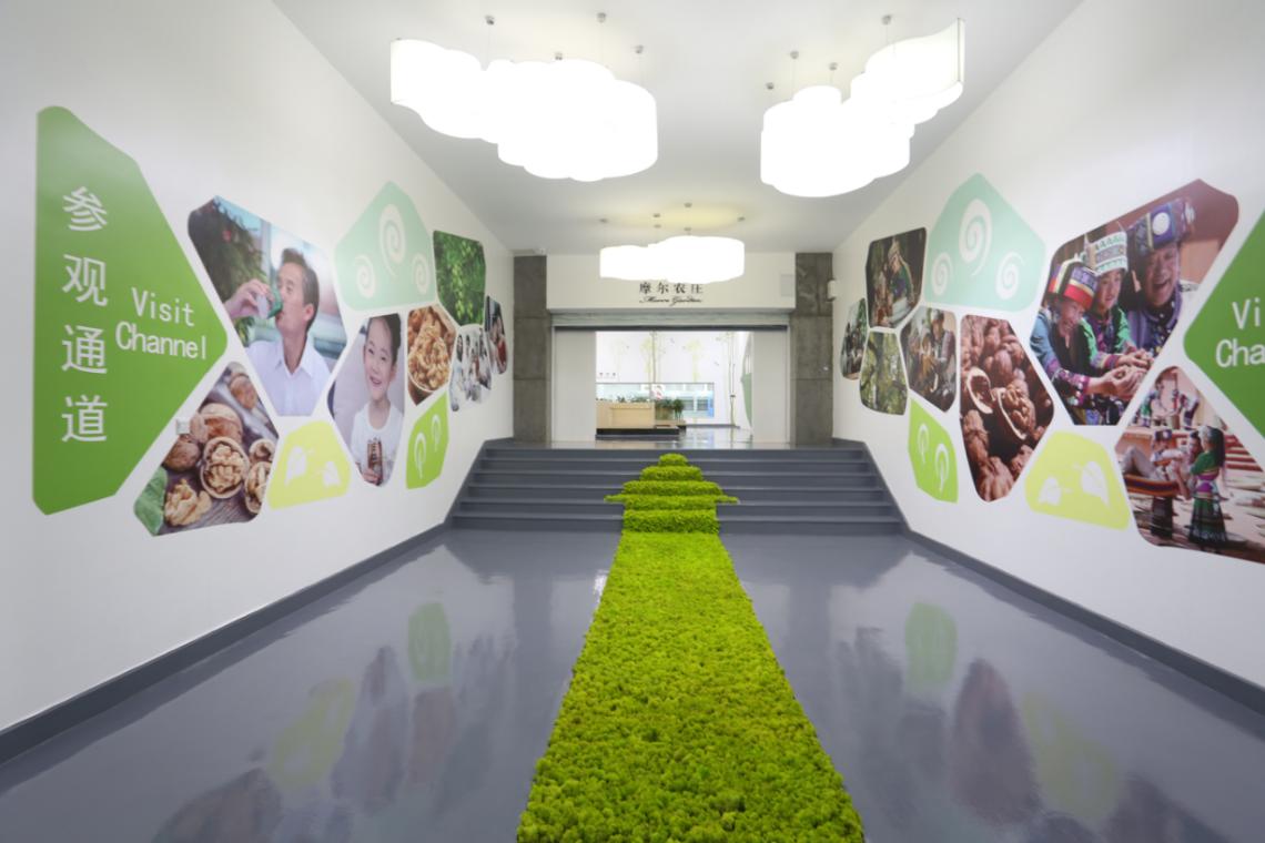 摩尔梦工厂包括5个功能区域,根据不同区域布置及功能设计,能为游客提供全方位的服务。一楼展示厅有植物馆、核桃博物馆、企业馆。二楼参观通道有280米长,6米宽,可直观看到各个生产环节,参观通道的末端,设有航天科技互动展示区,同时还设有一间用于播放企业品牌宣传片“摩尔之恋”的影院。在参观通道的最后,我们设有产品品鉴和购物区,消费者可进行产品品鉴及购物,可通过手机下单,我们将提供送货上门服务。同时,消费者可通过手机扫二维码下载APP进入智能导览系统和各项趣味体验项目。三楼会议区可根据需求提供培训及讲座服务,进一步将核桃及新型工业化知识植根于游客心中,重塑游客对于工业化的印象,提升品牌认知度。摩尔梦工厂还与紫溪山摩尔农庄形成了稳定的旅游路线:一是适合自驾、亲子、聚会、营地露营的短线游(紫溪山摩尔农庄+摩尔梦工厂);二是适合户外、夏令营、研学旅游路线(紫溪山摩尔农庄+摩尔梦工厂+自然教育或民俗文化学习);三是适合过境团队(摩尔梦工厂参观体验游)。