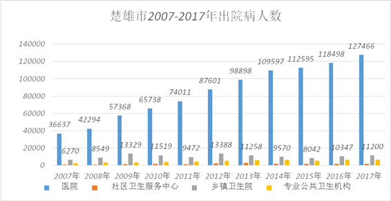 2017年,楚雄市卫生统计工作紧紧围绕经济社会发展大局,为深化医药卫生体制改革提供决策支持,为改善民生和促进卫生发展做好服务,认真履行工作职责,全面推进重点任务落实,工作成效显著。现将全市2017年全市统计医疗服务信息概况阐述如下: