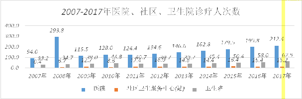 3.门诊次均费用:2017年全市医疗卫生机构次均门诊费用为173.9元,与上年同期比较提高11.26%,其中:医院次均门诊费用为250.4元,同比提高9.92%;基层医疗卫生机构次均门诊费用为48.1元,同比提高13.44%;专业公共卫生机构次均门诊费用为153.00元,同比提高14.09%(见表十二)。 表十二:医疗卫生机构门诊病人次均诊疗费用(元)  |
