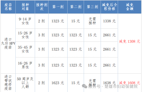 楚雄市妇幼保健院进口九价HPV疫苗、带状疱疹疫苗“惠民”接种活动开始啦!