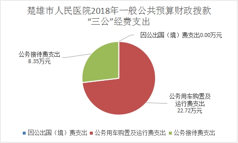 2018年度一般公共预算财政拨款“三公”经费支出决算中,因公出国(境)费支出0万元,占0%;公务用车购置及运行维护费支出22.72万元,占73.13%;公务接待费支出8.35万元,占26.87%。具体情况如下: