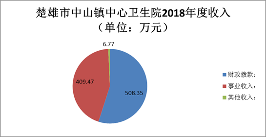 楚雄市中山镇中心卫生院2018年度收入合计924.59万元。其中:财政拨款收入508.35万元,占总收入的54.98%;上级补助收入0万元,占总收入的0%;事业收入409.47万元,占总收入的44.29%;经营收入0万元,占总收入的0%;附属单位缴款收入0万元,占总收入的0%;其他收入6.77万元,占总收入的0.73%。与上年对比总收入比上年的871.70万元增加52.89万元,增长6.07%,其中财政拨款收入比上年的442.44增加65.91万元,增长了14.90%,增加的主要原因为在职人员增资,人员经费增加,基本公共卫生服务能力提升,公共卫生服务项目补助资金增加,新增山区急救站专项经费。事业收入比上年的404.68万元增加了4.79万元,增加了1.18%,增加的主要原因为业务能力提升,医保相关扶贫政策实施,住院就医人员增长,总体上提升事业收入。其他收入比上年的24.36万元减少了17.59万元,减少72.21%,因为2017年其他收入多为偿还历史药品款让利款项,2018年此类款项较少。