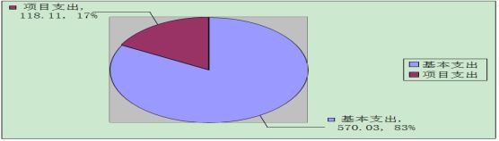 楚雄市西舍路镇卫生院2019年度支出合计688.14万元。其中:基本支出570.03万元,占总支出的82.84%;项目支出118.11万元,占总支出的17.16%。上缴上级支出、经营支出、对附属单位补助支出共0万元,占总支出的0%。与上年对比总支出增加1.37%,增加的主要原因卫生院在职职工人数增加,相应人员经费支出增加。