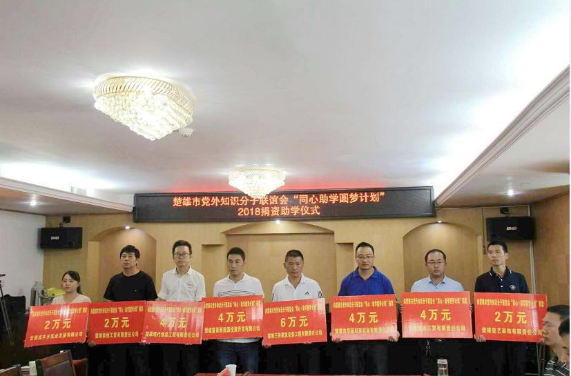 今年七月份以来,市委统战部、州党外知识分子联谊会楚雄市分会等部门联合发起楚雄市2018年“情系楚雄–爱心助学–同心圆梦–助力脱贫”活动倡议,得到了社会各企业、商家和爱心人士的积极响应。截至目前,活动收到8家爱心企业、商家和爱心人士捐资助学款共28万元,用以资助2018年考上一本的14名建档立卡贫困户大学新生,资助标准为每人每年资助5000元,每人四年大学共资助2万元,有效的帮助优秀贫困学生解决实际困难,帮助他们圆求学梦。