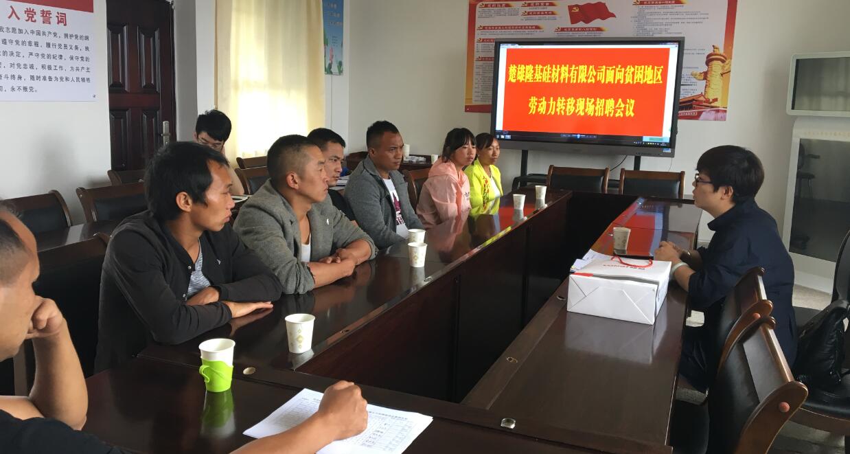 6月21日,楚雄隆基硅材料有限公司在楚雄市举办首次面向贫困地区劳动力转移招聘会,来自西舍路镇保甸村委会的7名建档立卡贫困劳动力全部通过面试,达成初步用工意向。